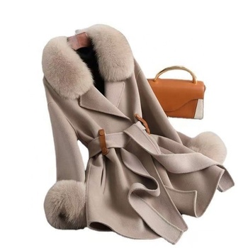 2025 nuova moda stringata con colletto e maniche in pelliccia di volpe Midi Double face cappotto di lana da donna